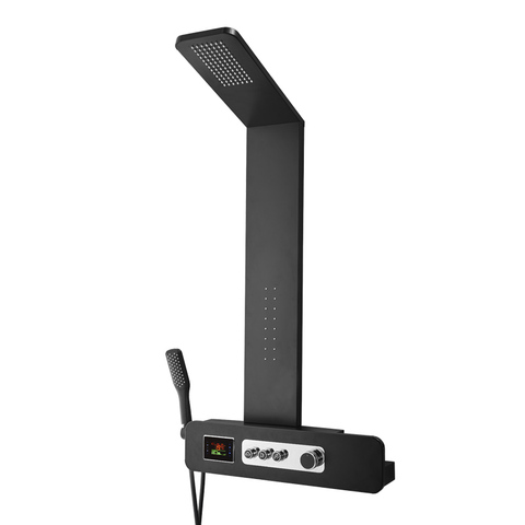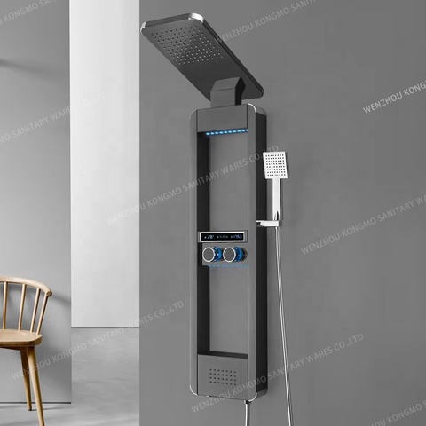 Chuveiro digital LED moderno sistema de chuveiro em aço inoxidável 304 conjunto de chuveiro montado na parede preto colonne de douche elétrico