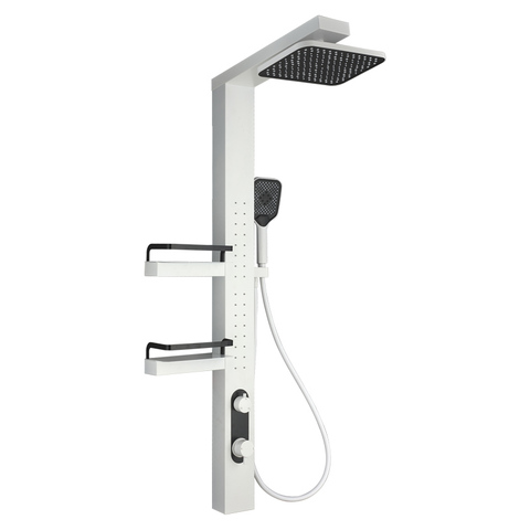 Conjunto de chuveiro de parede em aço inoxidável 304 branco, painel de chuveiro em forma de cachoeira, sistema de chuveiro para banheira, bico de chuveiro branco