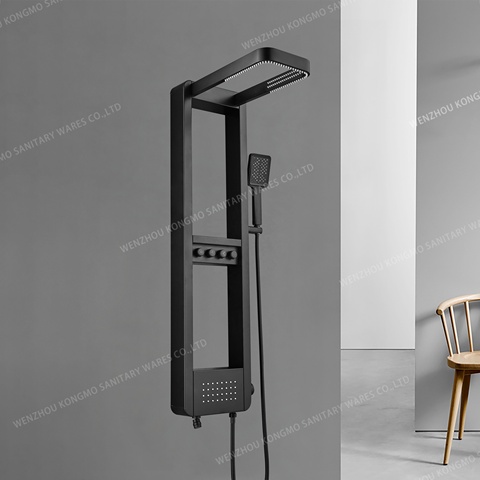 2025 Preto Aço Inoxidável Multifuncional Banheiro Chuva Painel Do Chuveiro Venda Quente Dupla Coluna Sprinkler Sistema Conjunto De Massagem Macia