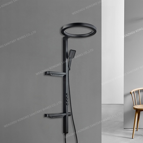 High-End 304 Aço Inoxidável Round-Head Painel Multifuncional Chuveiro com Prateleira Do Banheiro Torneiras Sistema para Villas e Hotéis