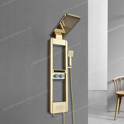 Luxo Golden Smart Display torneira do chuveiro com iluminação ambiente Sistema de chuveiro do banheiro para Villa & Hotel Use
